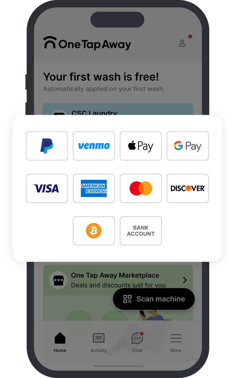 One Tap Away accepts all major credit cards, Apple Pay, Google Pay, PayPal, Venmo, and more!